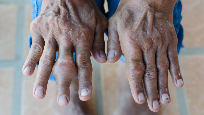 Gicht kann zudem sekundär durch andere Erkrankungen wie Nierenschäden oder unbehandelten Diabetes auftreten. Das Auftreten von Gichttophi, die Ablagerung von Harnsäurekristallen im Gewebe, ist ein Zeichen für fortschreitende Gicht.